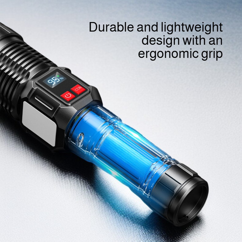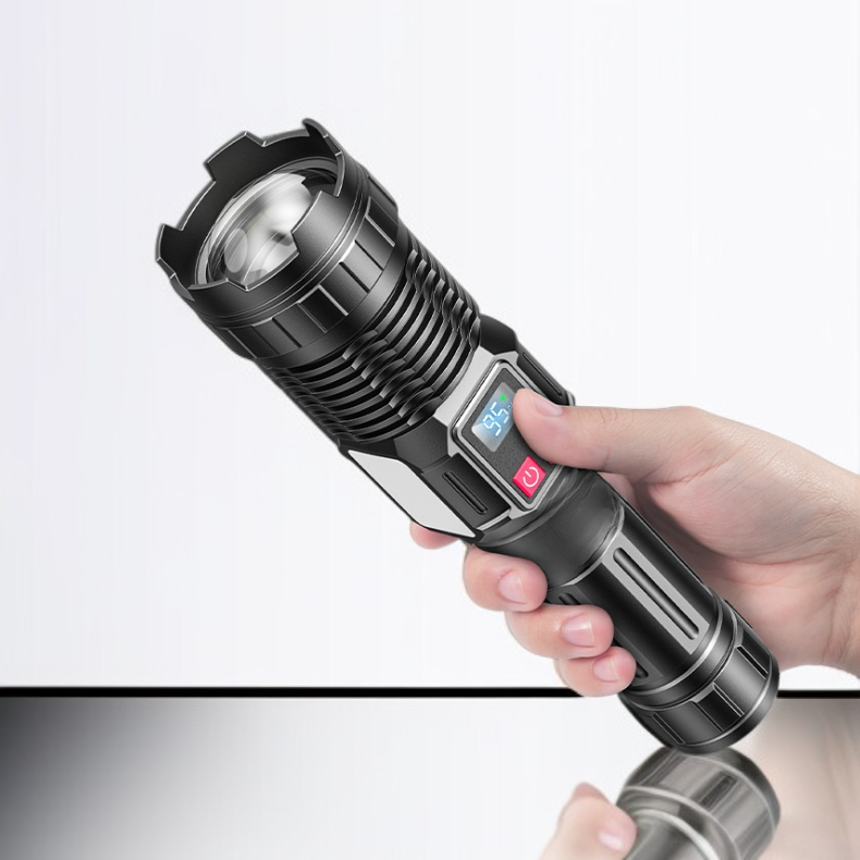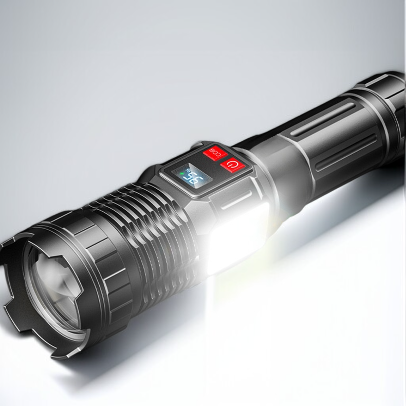 Extendable Focus LED Flashlight with Digital Screen